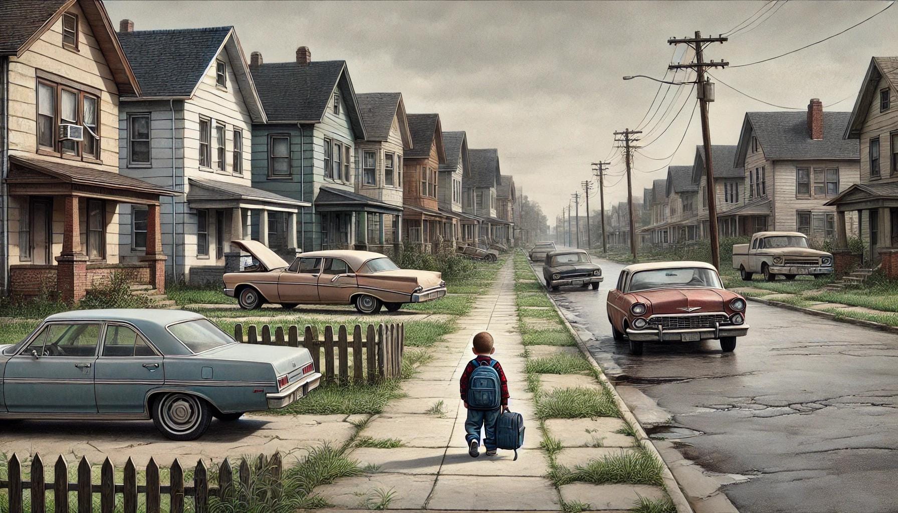 At a stop sign, we saw a little boy—maybe about 3 years old—walking down the middle of the street, his messy brown hair blowing in the breeze and his well-worn clothes looking way to big. He looked like he had no idea where he was headed. He was also pulling a book bag behind him, and we couldn’t see any adults nearby. We watched him through the rearview mirror, then glanced again through the side mirror, trying to figure out what was going on. Why wasn’t there an adult around? Where were his parents?